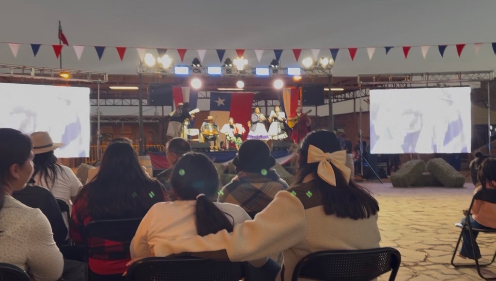 Behind the stage was a large Chilean flag. In front of it draped semicircles of red, white and blue; spanning the courtyard were lines showcasing those same colors. The place was fully fiestas patrias-ed out. To be fair, so was just about every business, home, and public center these days. Even my climbing gym had a set of translucent holds with Chilean flags and pinwheels inside.