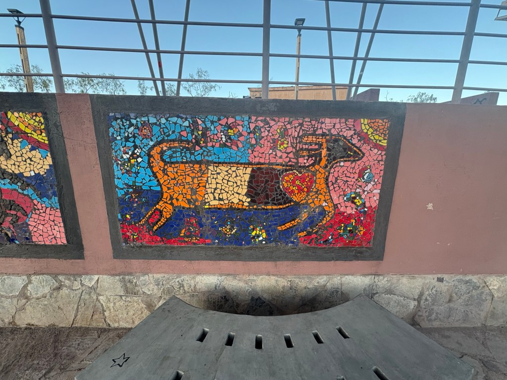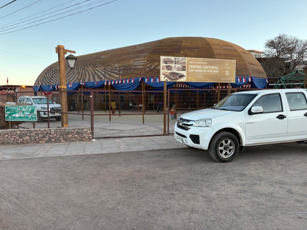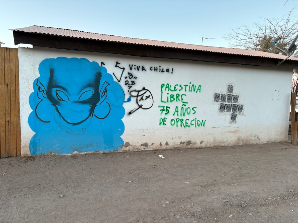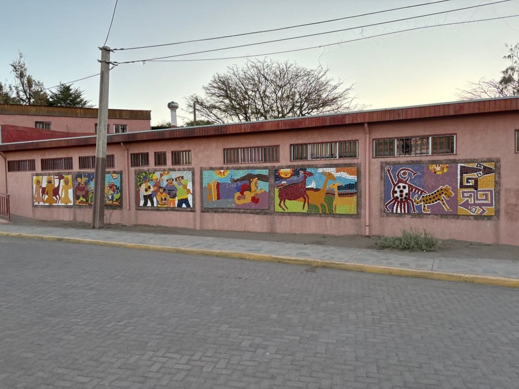 Even as I drew nearer to the town center and the more-trafficked areas, there were plenty of signs of a thriving local community distinct from the tourist economy. The graffiti and murals, which abound in Chile, were tinged with a distinct Altiplano flair. The tiny elementary school had flyers on its adobe walls written, at least partially, in an indigenous language. Just past this was some sort of cultural center/amphitheater hybrid, empty but decorated with the national colors of red, white, and blue—ready for fiestas patrias.