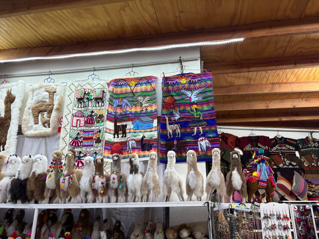 Further in, the main drag of San Pedro hummed with tourists returning from the days’ excursions, a dirt road lined with tour agencies, hostels, and bars. Especially numerous were the vendors selling their wares; every other door offered blankets of striking blue and orange hues, coats fashioned from alpaca and vicuña fur, or countless bracelets and hats and necklaces. Not to mention the plethora of fridge magnets and “San Pedro de Atacama” T-shirts.