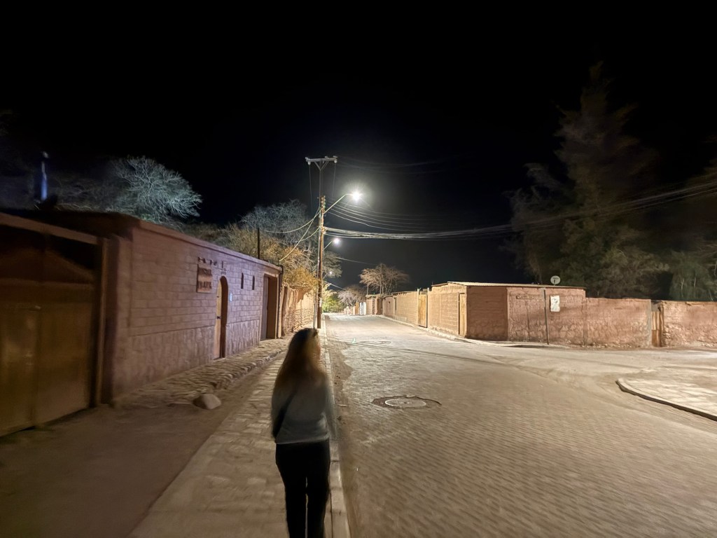 We had come the night prior, too, to explore. The Spanish word “recorrer” comes to mind, which doesn’t have a great English translation. “Travel around,” maybe; we had been taking a stroll. At some point, we had gotten completely lost, routed away from this main street. It was late, our data wasn’t working, and there wasn’t really any street lighting. With the desert architecture, it felt like we were in the back alleys of Mos Eisley, minus the scum and villainy. Instead of being scary, though, it had been fun. San Pedro wasn’t large enough to be lost in for too long, so there was no urgency, and eventually we had found the Airbnb.