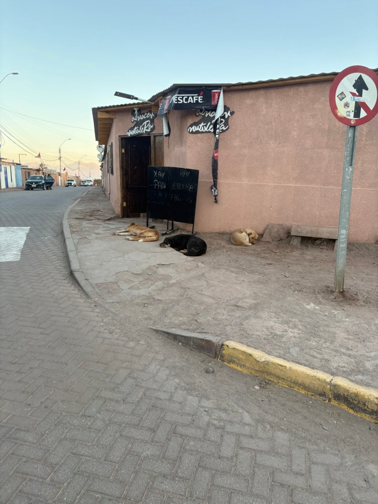 Ice cream in hand but still craving the mystery spice of the nebulous Blue Takis, I began to wander the side streets of San Pedro. As I stopped in minimarket after minimarket (Chile has top-notch “minimarkets per capita” game, let me tell you), I realized that I had stumbled upon a pretty solid formula for solo exploration. I would enter a minimarket, look for the Blue Takis, fail to find them, make conversation with the shop owner (a two-in-one of learning about the town and practicing my Spanish), pet the dogs sitting by the front door, and set off for the next one.